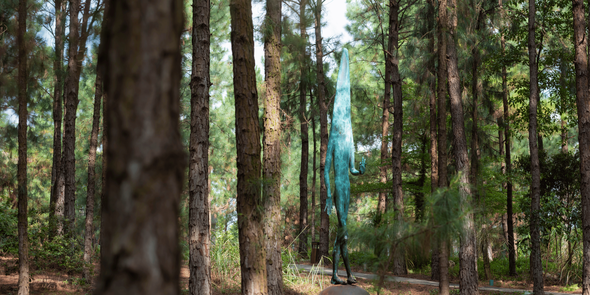 Từ những cánh rừng, hàng cây xanh và bầu không khí trong lành quanh Hồ Đại Lải, tôi đã hình dung tác phẩm của mình như một người bạn đồng hành của những cây thông nơi đây. Với bố cục thẳng đứng gợi sự gần gũi, gắn kết với những hình ảnh đời thường hòa hợp với thiên nhiên xung quanh.