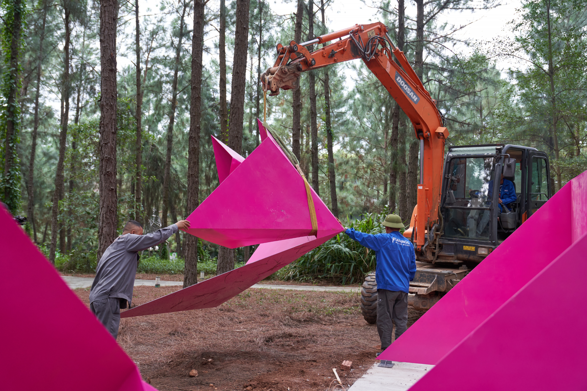 Tác phẩm Sen của Lê Thị Hiền được lắp đặt giữa rừng thông Đại Lải. Ảnh: Flamingo