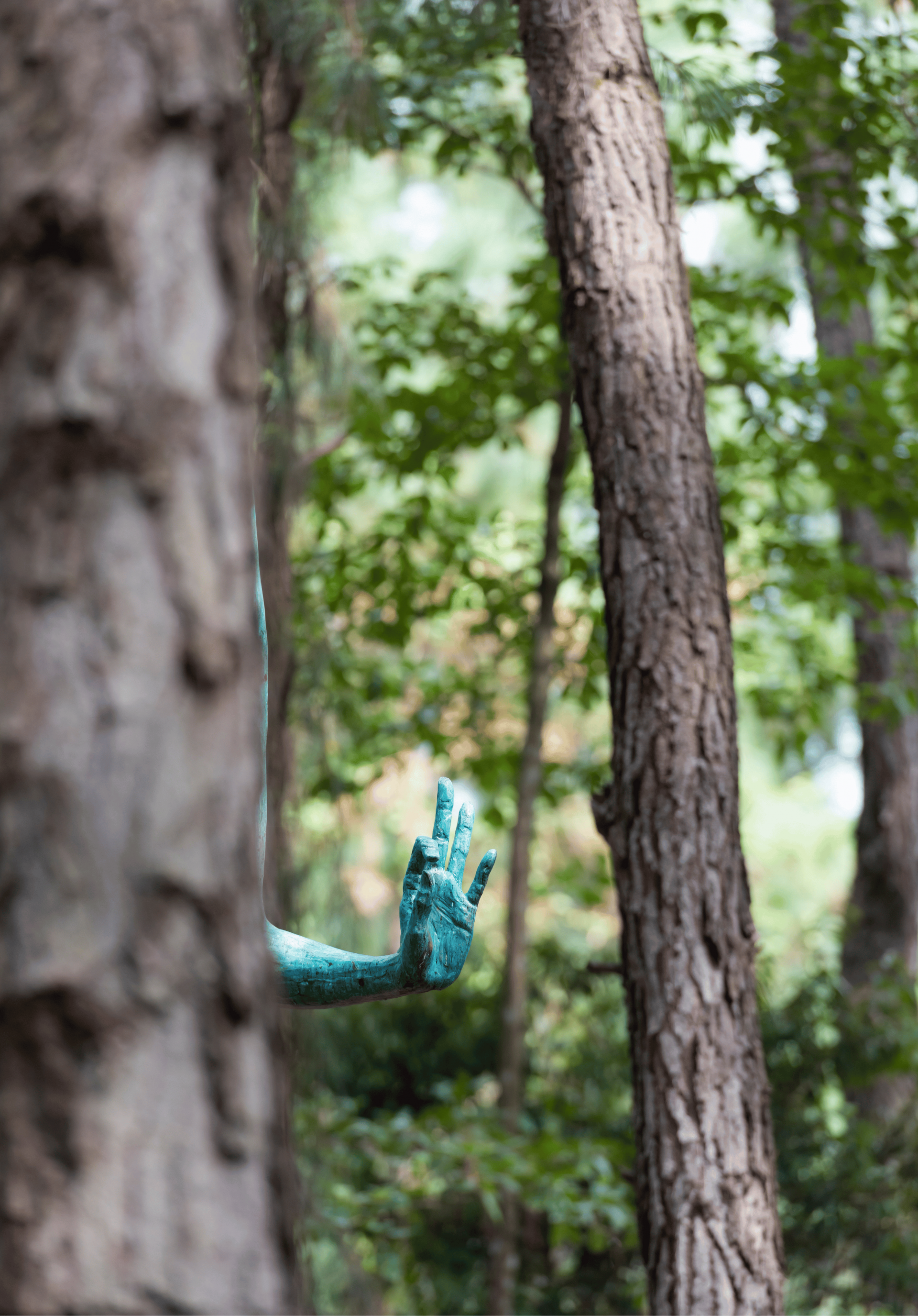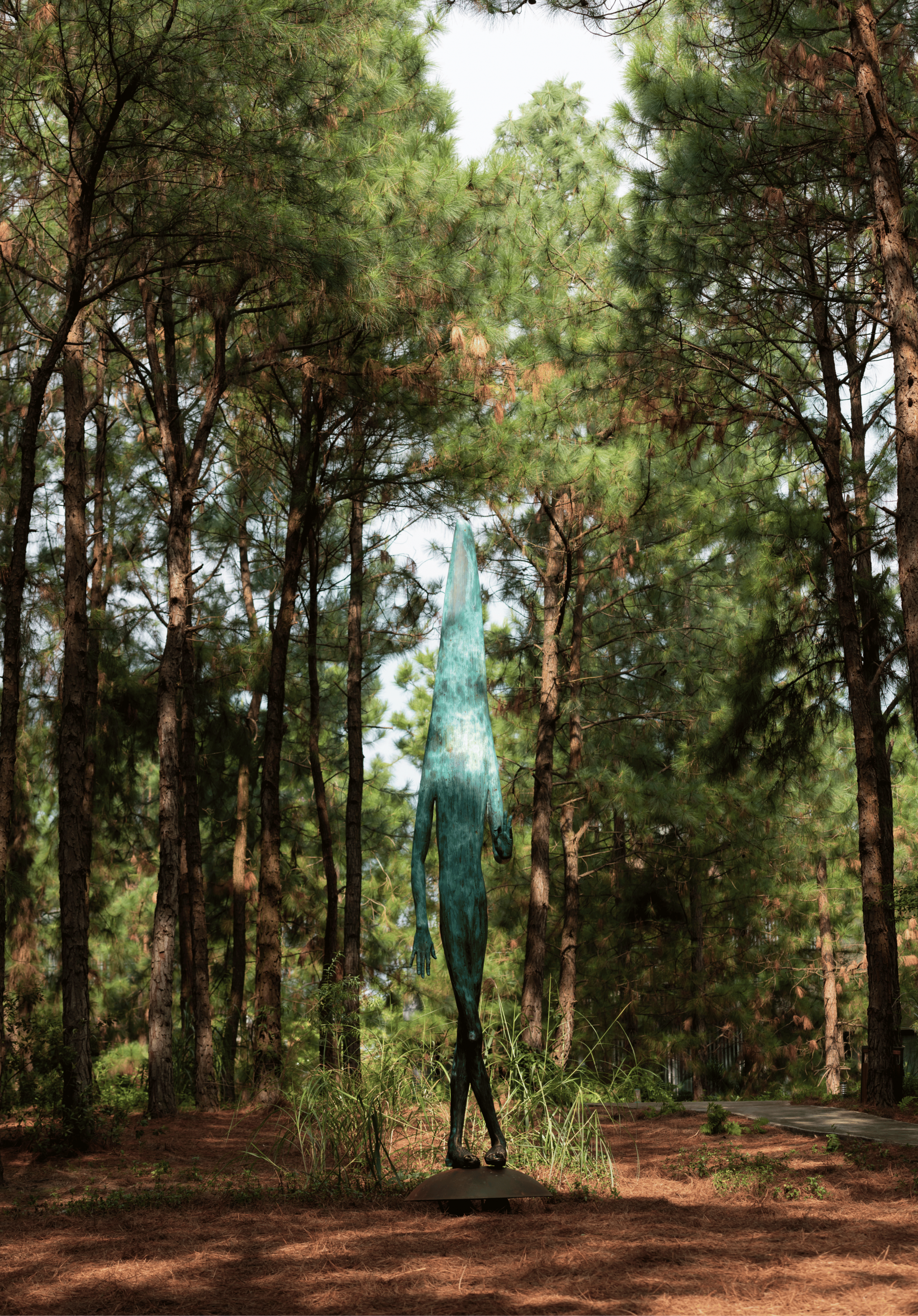 Từ những cánh rừng, hàng cây xanh và bầu không khí trong lành quanh Hồ Đại Lải, tôi đã hình dung tác phẩm của mình như một người bạn đồng hành của những cây thông nơi đây. Với bố cục thẳng đứng gợi sự gần gũi, gắn kết với những hình ảnh đời thường hòa hợp với thiên nhiên xung quanh.