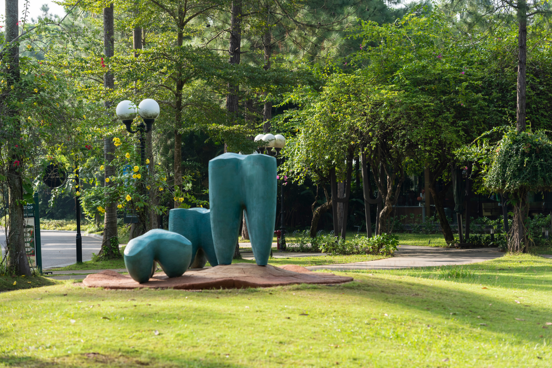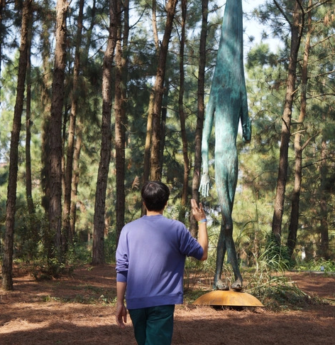 Trong khi đó, OK bạn - tác phẩm của điêu khắc gia trẻ Phạm Đình Tiến, lại thú vị theo cách rất dí dỏm, nhẹ nhàng và gần gũi, như một người bạn đồng hành cùng những cây thông trong rừng thông Đại Lải.